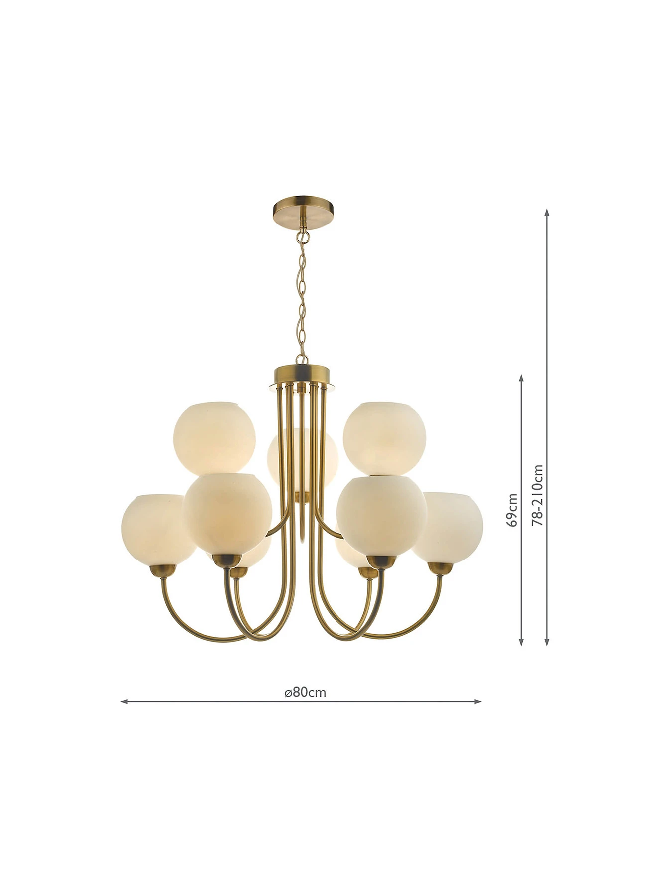 - Size: H min78 – max210 x D80cm. Bulb not included. Bulb required: BUL/E14/LED/13